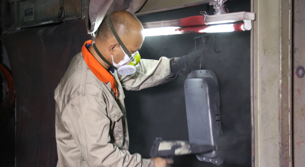 يستخدم خط إنتاج الطلاء بالمسحوق فى طلاء سطح المنتجات. حيث أن قدرة الأنتاج اليدوى 2.5 مليون وحدة. يعد سمك الطلاء المسحوق أكثر سمكاً من الطلاء بالرش وذلك يعد تأثير السطح فعال